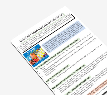 Over 350 reproducible pages in PDF format divided into Reading, Spelling, Handwriting, Assessment and Charts sections. These pages refer to, and are intended for use with, the THRASS Teacher’s Manual, Raps & Sequences CD and other supporting THRASS materials.